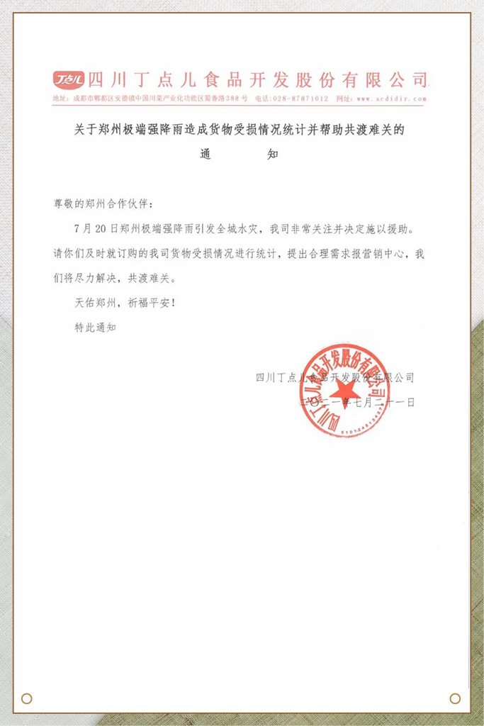 關(guān)于鄭州極端強(qiáng)降雨造成貨物受損情況統(tǒng)計(jì)并幫助共度難關(guān)的通知