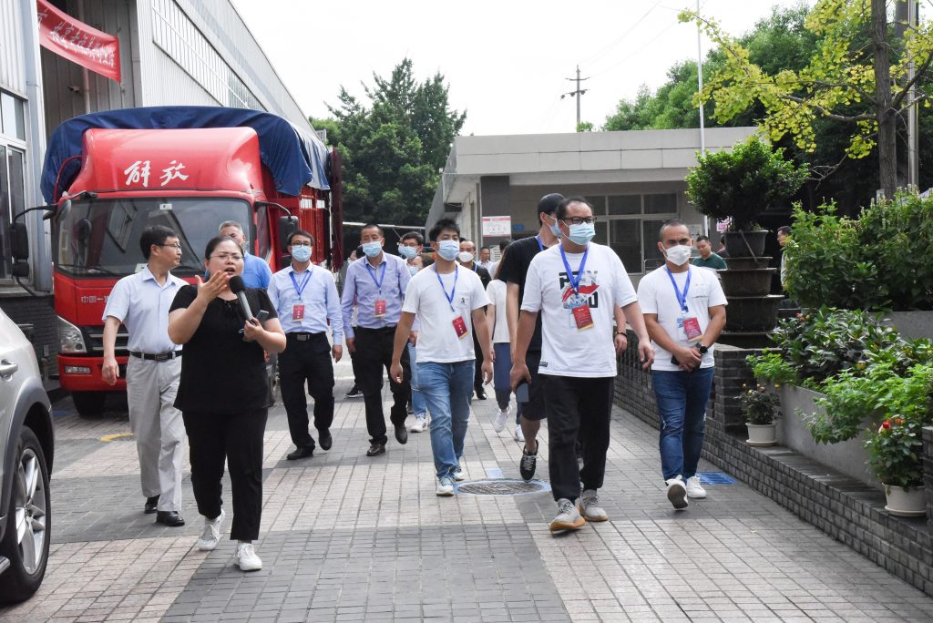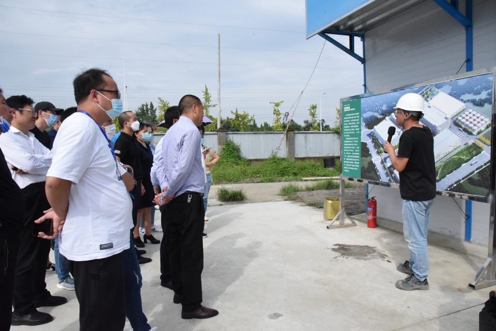 △丁點兒股份項目經(jīng)理張欣為考察團嘉賓介紹公司生產(chǎn)基地擴能技改項目