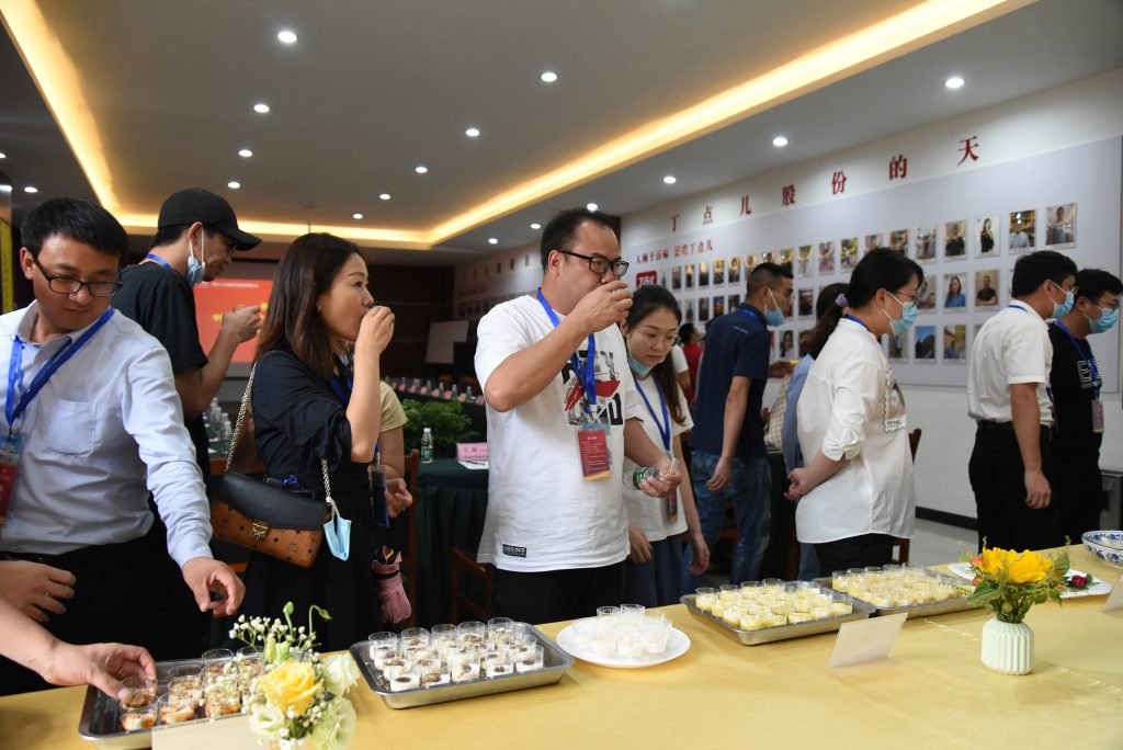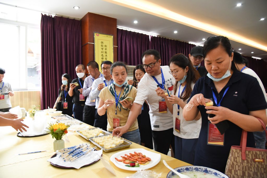 △考察團嘉賓一行品鑒、交流丁點兒產(chǎn)品及菜品