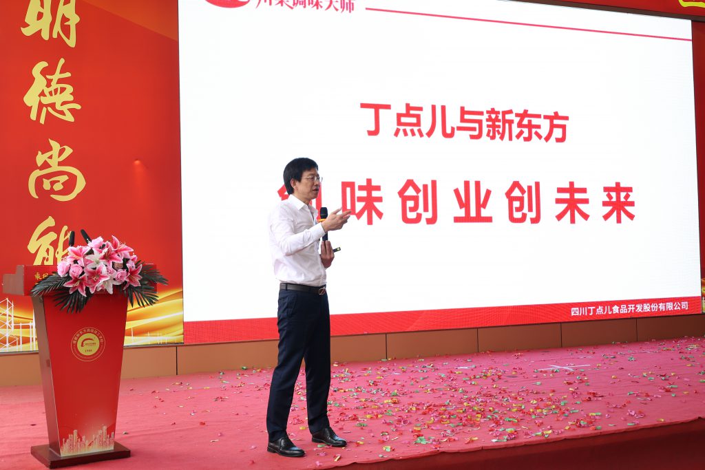 ? ? ? ? 簽約儀式后,丁點兒股份任康董事長受邀作主題演講,他在演講中提到:“同學們是未來川菜產業(yè)發(fā)展的踐行者,也是川菜文化的傳承者。丁點兒股份是川菜調味料行業(yè)發(fā)展的引領者,相信丁點兒產品能成為同學們烹飪技能培養(yǎng)中最值得信賴的伙伴。丁點兒股份愿意為同學們提供實習、就業(yè)和創(chuàng)業(yè)機會,愿意與新東方高級技工學校在產教融合發(fā)展方面加強合作,共同譜寫職業(yè)教育改革發(fā)展新篇章?!?/p>