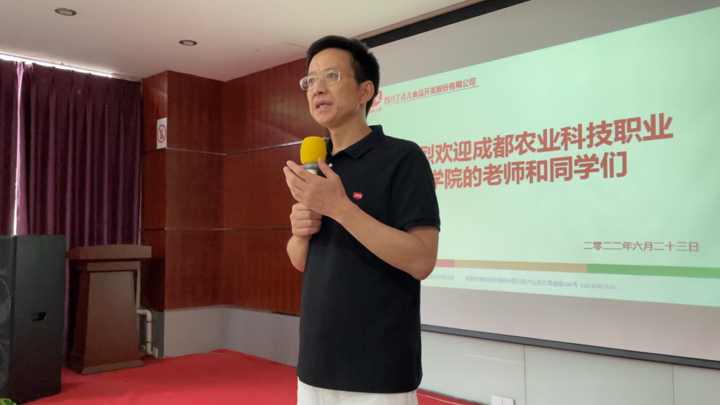 ? ? ? ?隨后,參觀師生一行觀看了丁點兒股份企業(yè)宣傳片。丁點兒股份董事長任康上臺致辭并做簡要分享。