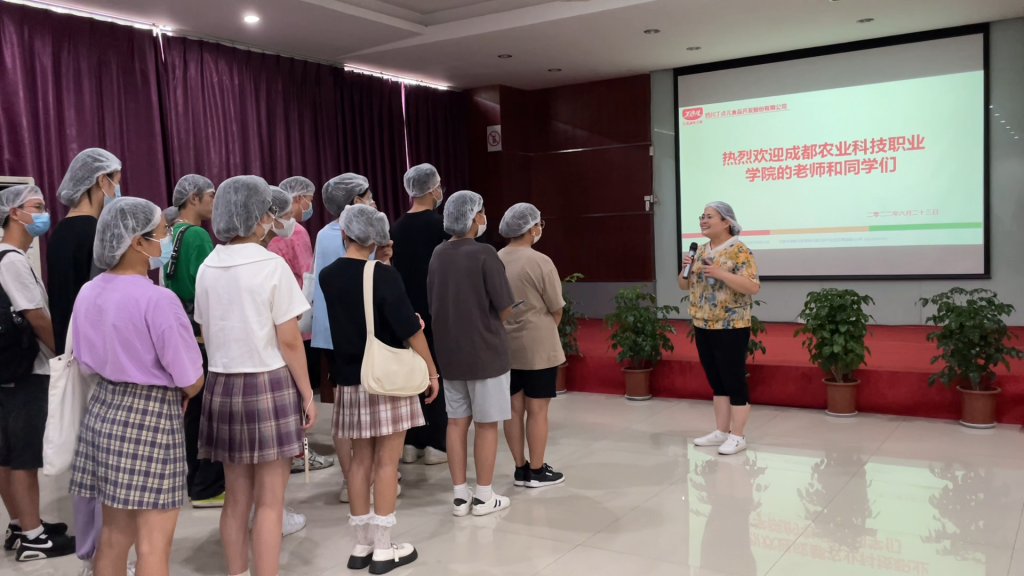 ? ? ? ?為扎實推進產(chǎn)教深度融合,拓寬校企合作深度,盡早讓學生了解所學專業(yè)用途,切身了解企業(yè)對人才的需求標準、認識技能與就業(yè)能力的重要性,6月23日上午,成都農(nóng)業(yè)科技職業(yè)學院三位老師帶領(lǐng)一百名學生來到丁點兒股份參觀交流、探索學習。丁點兒股份企業(yè)技術(shù)中心常務副主任羅強祖、人資行政部部長陳霞等相關(guān)領(lǐng)導參與迎接并向來訪師生表示熱烈的歡迎。