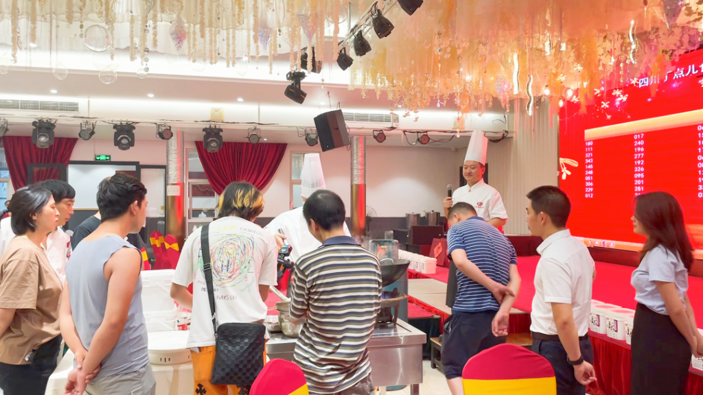 ? ? ? ?品鑒會現(xiàn)場,丁點兒股份技術中心應用培訓部副部長陳證宇攜手其助手李永龍在品鑒會上應用丁點兒特色產品,帶來了4道特色川式美味菜品并就相關產品深度延展應用作了分享。