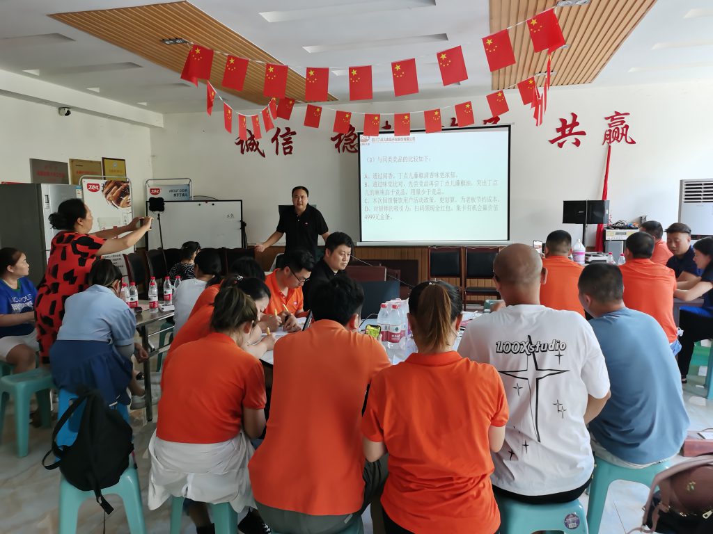 ? ? ? ?8月9日,來(lái)自丁點(diǎn)兒股份與遂寧巴味鮮的20名銷售精英齊聚遂寧召開(kāi)了突擊活動(dòng)培訓(xùn)暨動(dòng)員大會(huì)。丁點(diǎn)兒股份市場(chǎng)總監(jiān)劉振平作為本次活動(dòng)的負(fù)責(zé)人組織針對(duì)丁點(diǎn)兒企業(yè)概況、新產(chǎn)品特性優(yōu)勢(shì)、促銷舉措、銷售技巧、信心鼓舞、成效考核及激勵(lì)措施等方面開(kāi)展了多維度內(nèi)容培訓(xùn),為本次活動(dòng)完成既定目標(biāo)任務(wù)奠定了堅(jiān)實(shí)基礎(chǔ)。