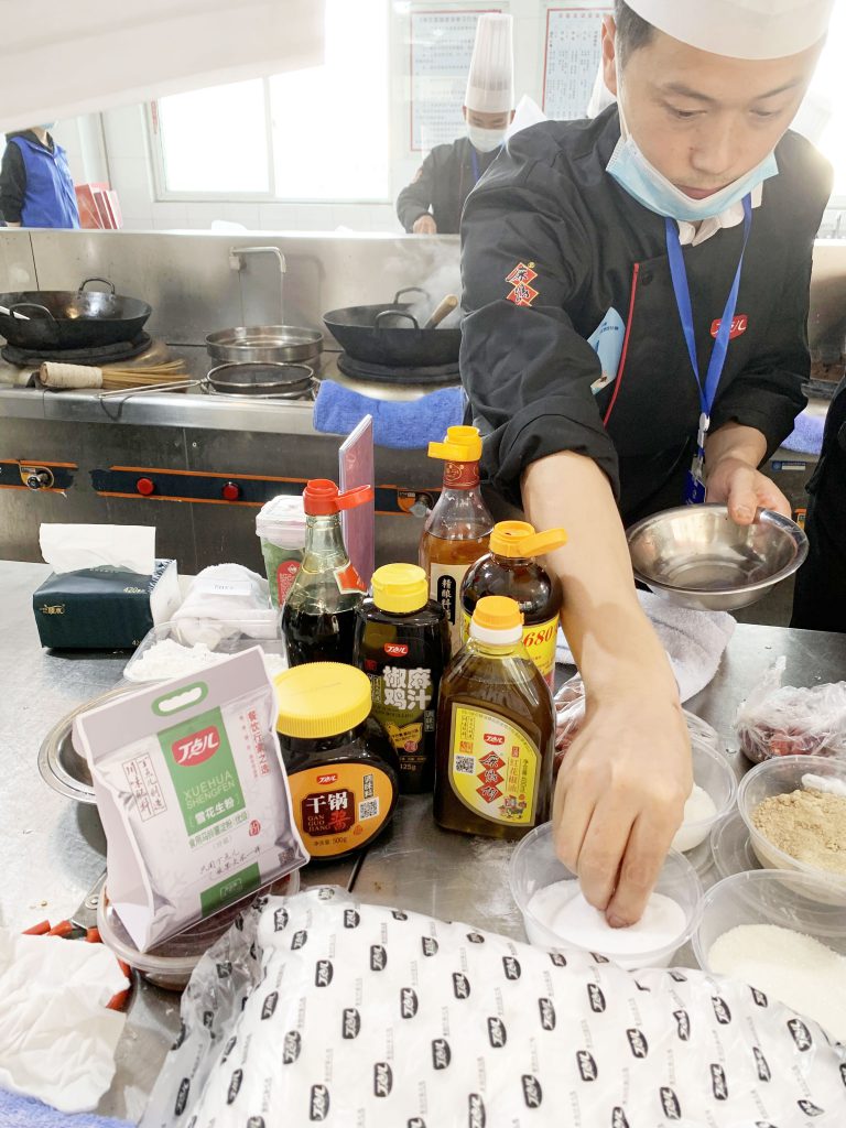 營養(yǎng)配餐員比賽包括筆試和實操兩個環(huán)節(jié),在數(shù)天的激烈角逐中,丁點兒股份應用培訓部副部長、川菜調(diào)味大師陳證宇用丁點兒產(chǎn)品烹制出色香味俱全的花膠雞、香水豆花、泡蘿卜等菜品,并憑借扎實的理論基礎和出色的實踐操作技能獲得第三名。