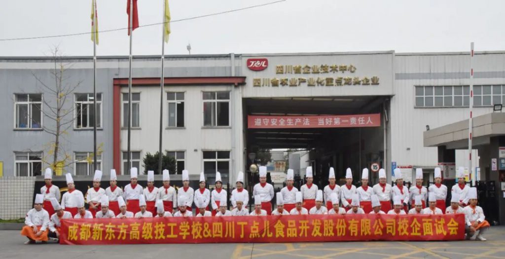 為加強校企合作,深化產(chǎn)教融合,實現(xiàn)企業(yè)與學(xué)校的優(yōu)勢互補、人才共享。11月10日,成都新東方高級技工學(xué)??倧N班、大廚班師生一行50人蒞臨丁點兒股份安德生產(chǎn)廠區(qū)參觀交流。