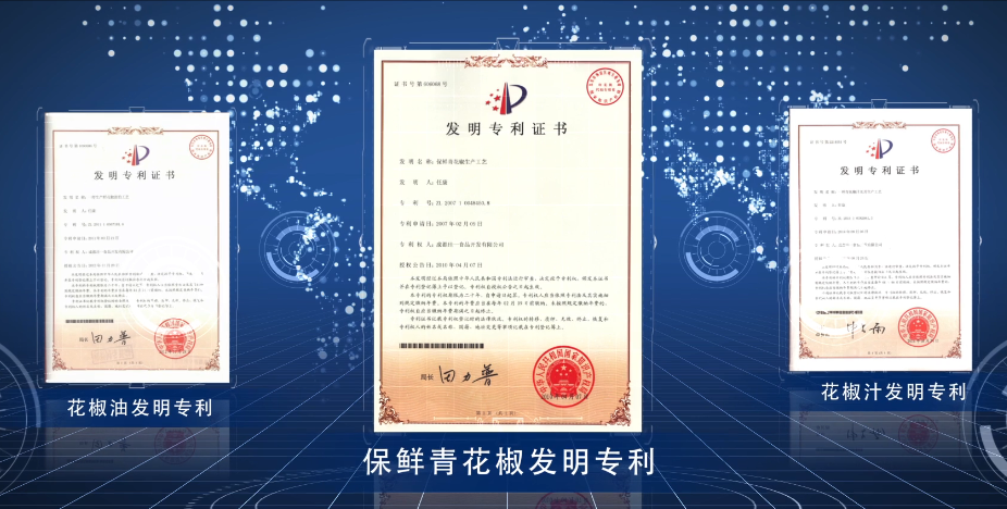 丁點兒股份不斷開發(fā)新技術(shù)、改進新工藝,先后獲得包括青花椒保鮮、鮮花椒油生產(chǎn)工藝、花椒提取物苦味去除技術(shù)、花椒提露、干制方法及裝置、青花椒汁及其生產(chǎn)工藝多項發(fā)明專利,多項技術(shù)屬行業(yè)領(lǐng)先。
