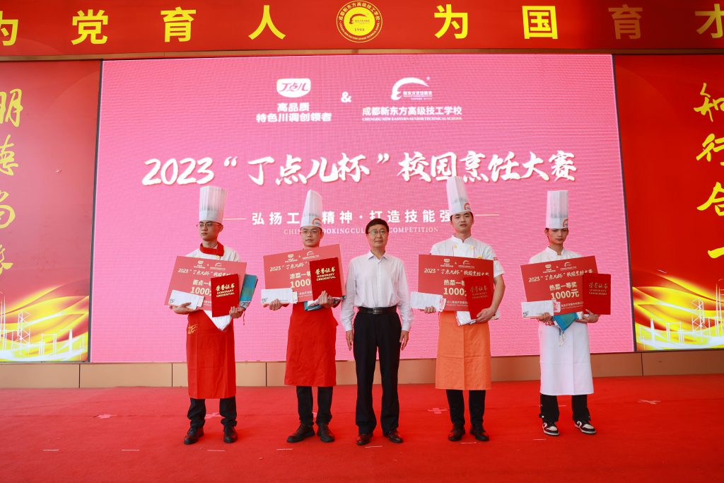 在全體師生的見證下,成都新東方高級技工學(xué)??偨虅?wù)主任周后超和丁點兒股份川菜大師陳證宇代表校企雙方進行了“丁點兒”總廚班贈牌儀式。“丁點兒”總廚班的開設(shè)是丁點兒股份深化校企合作的又一形式,有利于學(xué)員對特色川調(diào)生產(chǎn)工藝和產(chǎn)品知識的了解,讓學(xué)員更好掌握菜品調(diào)味技巧。