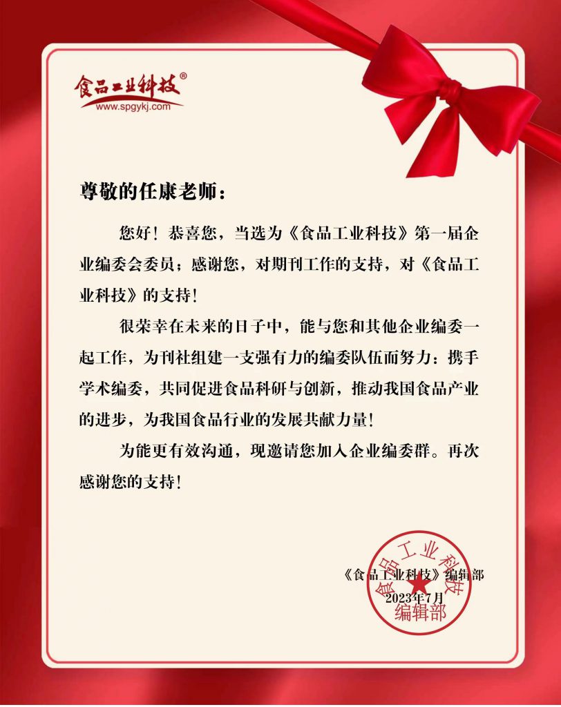 熱烈祝賀!丁點兒股份任康董事長當(dāng)選《食品工業(yè)科技》第一屆企業(yè)編委
