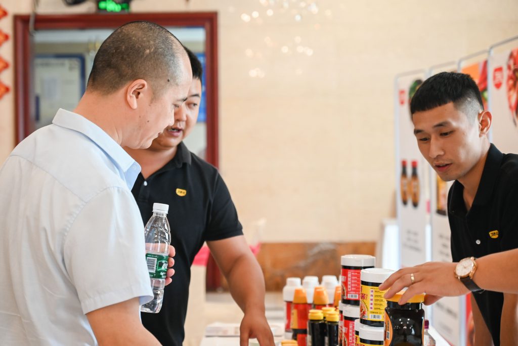 在丁點兒藤椒油、老壇酸菜醬、椒麻雞汁、干鍋醬等的加持下,每道菜品香飄四溢,引得眾人贊不絕口。大家紛紛來到丁點兒高品質(zhì)特色川調(diào)產(chǎn)品展示區(qū),咨詢了解、溝通合作。