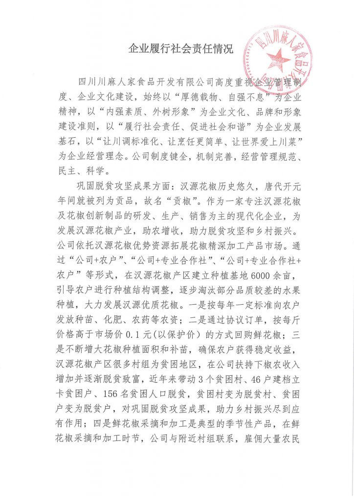 丁點(diǎn)兒股份全資子公司四川川麻人家-企業(yè)履行社會(huì)責(zé)任情況