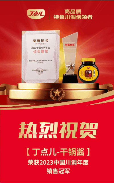 丁點(diǎn)兒干鍋醬、椒麻雞汁、藤椒油、麻得倒紅花椒油、老壇酸菜醬等產(chǎn)品更是在“中國川調(diào)之夜”大放異彩,獲得了品類銷售冠軍、品類十大創(chuàng)新產(chǎn)品、品類十大影響力品牌等多個(gè)獎(jiǎng)項(xiàng)。