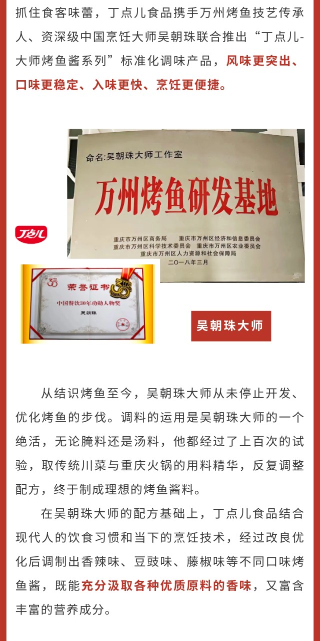 洞察千億級烤魚賽道,丁點兒食品攜手萬州烤魚技藝傳承人吳朝珠大師再出新招