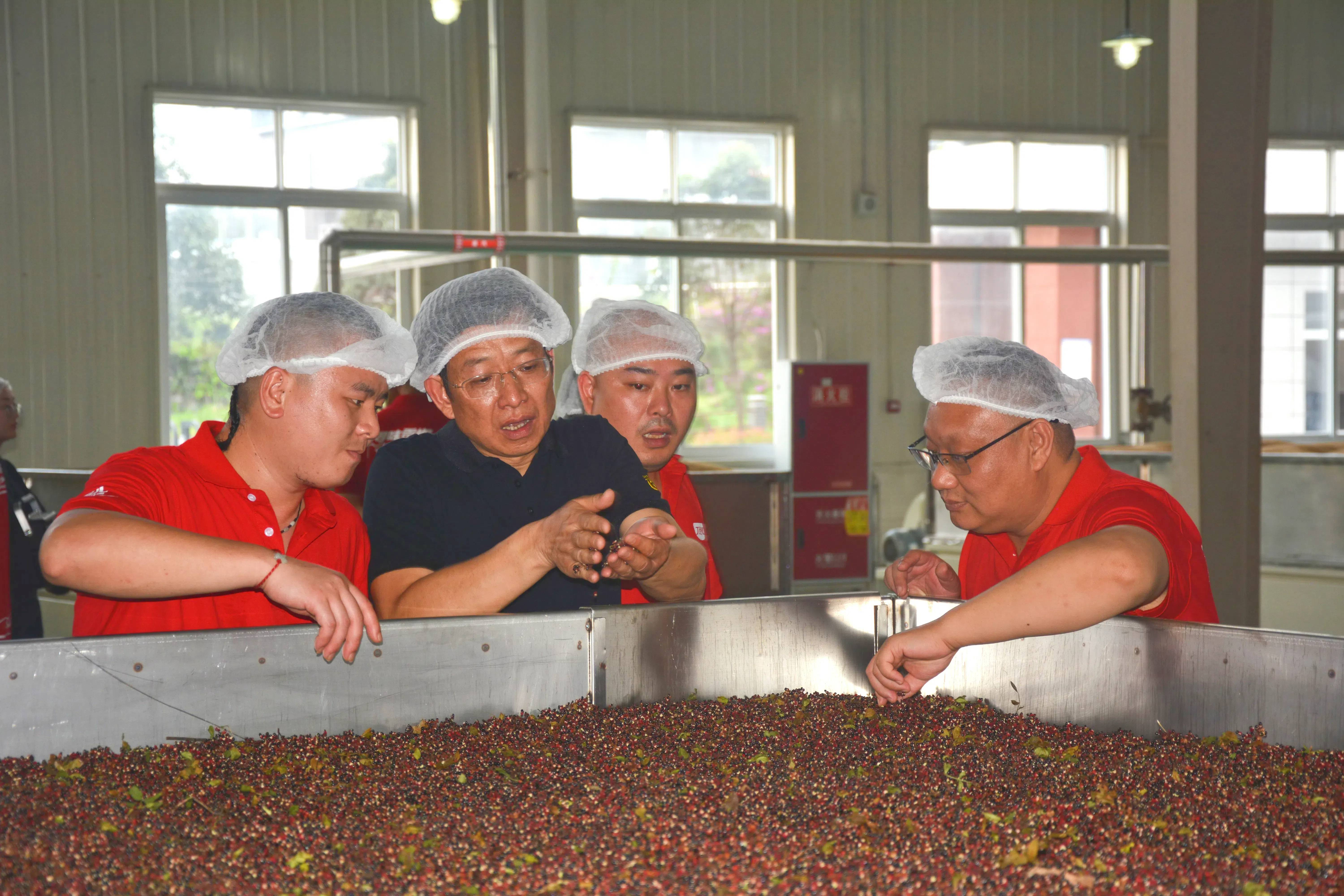 嘉賓一行參觀了丁點兒食品花椒干制、鮮花椒物理壓榨和花椒創(chuàng)新產(chǎn)品3個生產(chǎn)基地。數(shù)字化的生產(chǎn)設(shè)備和控制系統(tǒng),嚴(yán)格的品控流程,確保丁點兒產(chǎn)品的卓越品質(zhì)。
