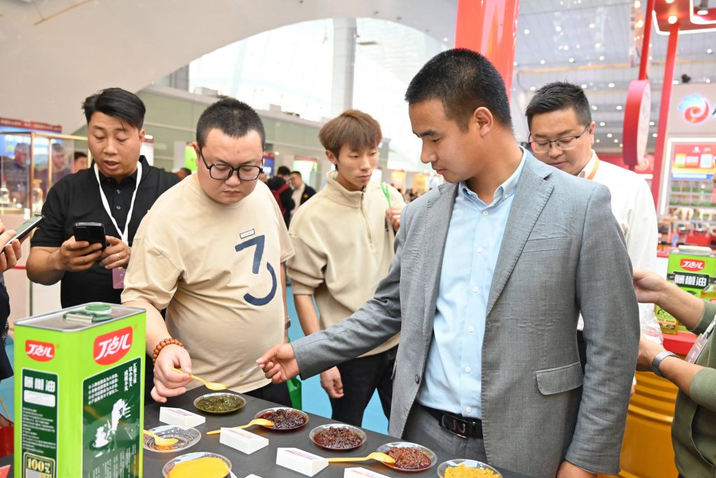 展會現(xiàn)場,美食薈萃,美酒飄香,各種復(fù)合調(diào)味料、特色小吃、比賽菜品等琳瑯滿目,讓人流連忘返。