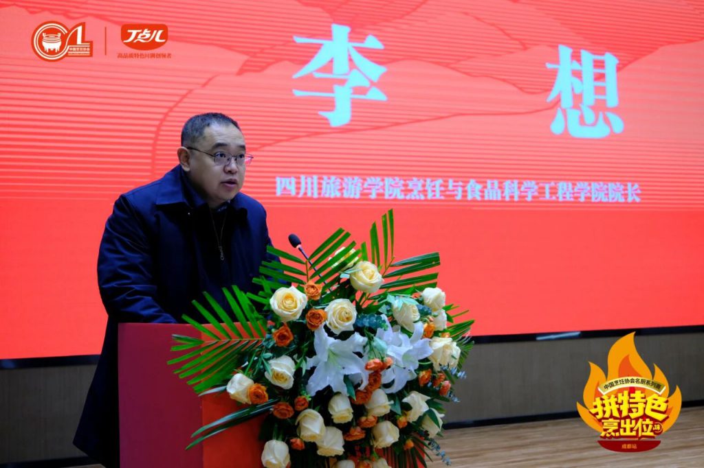 丁點兒食品董事長任康,中國烹飪協(xié)會副會長、名廚專業(yè)委員會主席孫曉春,四川旅游學(xué)院黨委常委、副校長王沖,四川省美食家協(xié)會會長麥建玲,四川省烹飪協(xié)會執(zhí)行會長高樸,四川省財貿(mào)輕化紡工會常委、成都市美食業(yè)工會主席王獻(xiàn)章,成都餐飲同業(yè)工會會長袁小然等相關(guān)領(lǐng)導(dǎo)出席了大賽開幕儀式,并紛紛登臺致辭,對本次大賽給予了高度評價與深切期望。