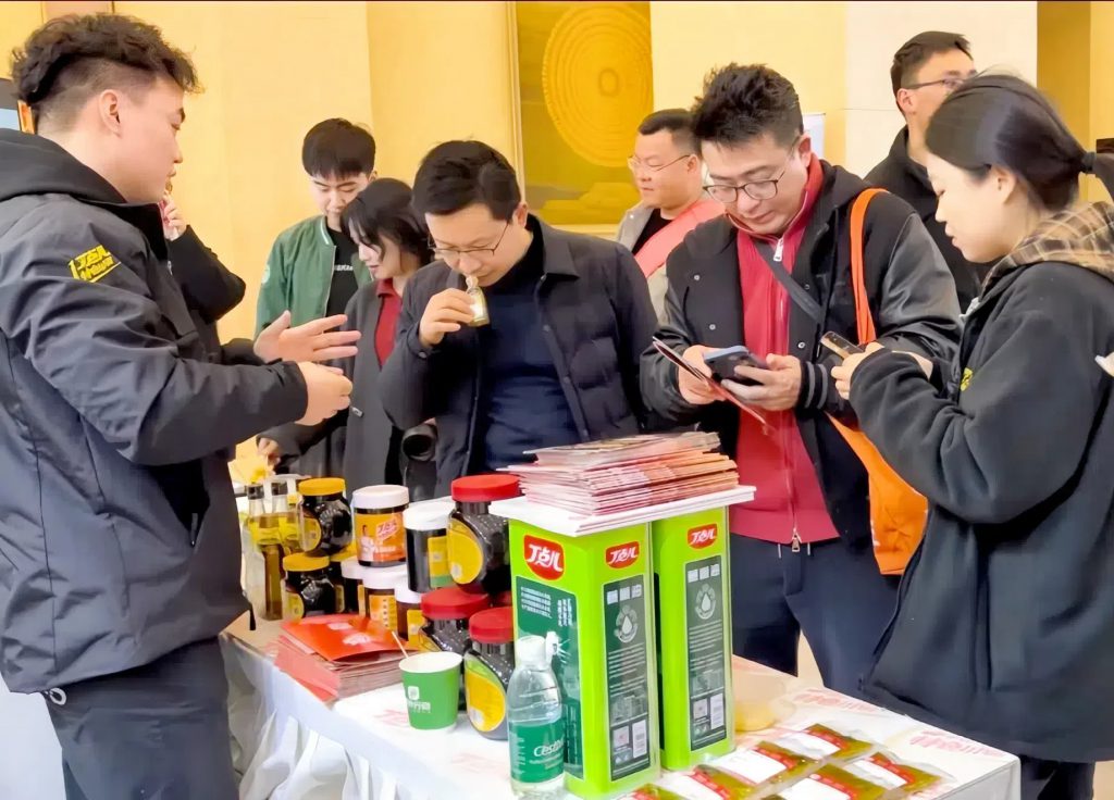 靠近丁點兒食品展區(qū),由丁點兒干鍋醬、金湯酸菜醬、椒麻雞汁、泡椒醬等烹飪的干鍋醬香掌中寶、金湯酸菜魚片、椒麻春筍絲、泡椒魷魚花等菜品香氣便撲鼻而來,引得與會嘉賓紛紛前來品鑒?!斑@個掌中寶好吃!干鍋味道厚重、純正,香氣濃郁,很贊!”“這個春筍絲味道爽麻了!”……嘉賓們被丁點兒的菜品味道征服,即刻咨詢高品質(zhì)特色川調(diào)產(chǎn)品,尋求合作,現(xiàn)場一片火爆!