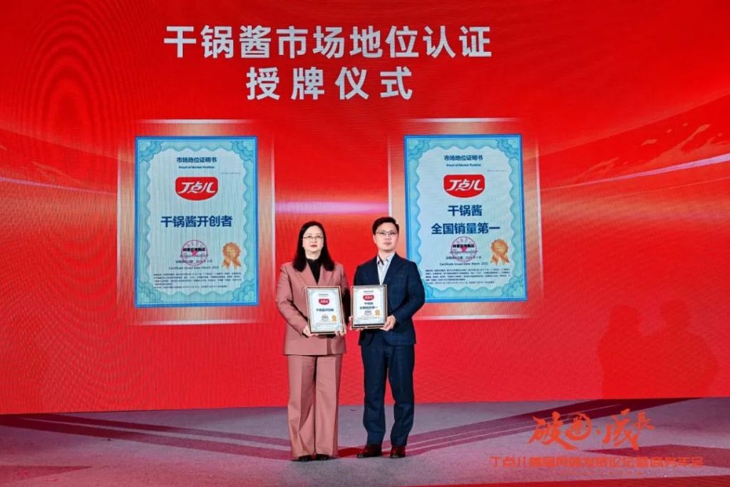 活動(dòng)現(xiàn)場(chǎng)還發(fā)布了一個(gè)重磅消息,尚普咨詢集團(tuán)通過(guò)對(duì)比中國(guó)大陸(含22個(gè)省、5個(gè)自治區(qū)、4個(gè)直轄市)范圍內(nèi),全渠道市場(chǎng)、各干鍋醬產(chǎn)品上市時(shí)間與創(chuàng)新情況,得出丁點(diǎn)兒為“干鍋醬開(kāi)創(chuàng)者”的認(rèn)證。同時(shí)根據(jù)全渠道市場(chǎng),各干鍋醬品牌相關(guān)產(chǎn)品銷量情況,得出丁點(diǎn)兒“干鍋醬全國(guó)銷量第一”的認(rèn)證。這兩大品牌認(rèn)證,樹(shù)立了丁點(diǎn)兒在干鍋醬品類的絕對(duì)地位。