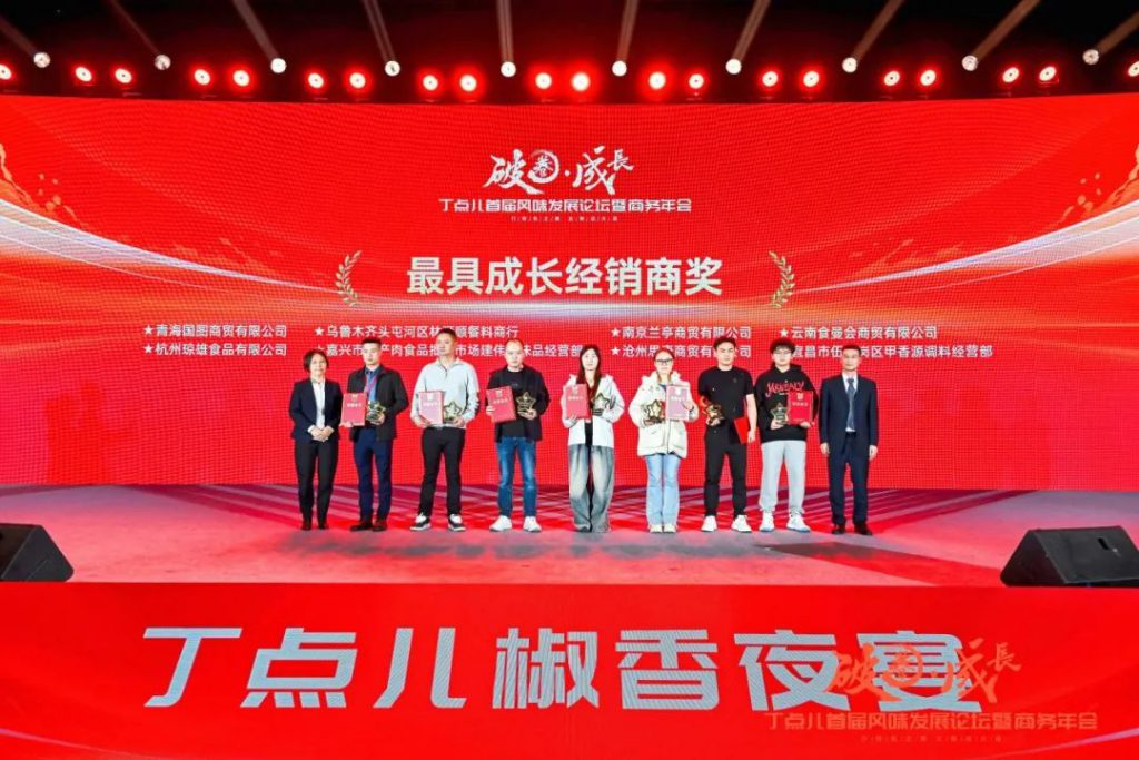 在溫馨而歡樂(lè)的氛圍中,丁點(diǎn)兒椒香夜宴拉開(kāi)序幕。晚宴上,丁點(diǎn)兒食品特別表彰了2024年在市場(chǎng)開(kāi)拓與品牌推廣中貢獻(xiàn)卓越的經(jīng)銷商伙伴。