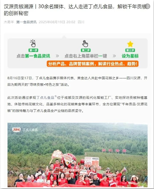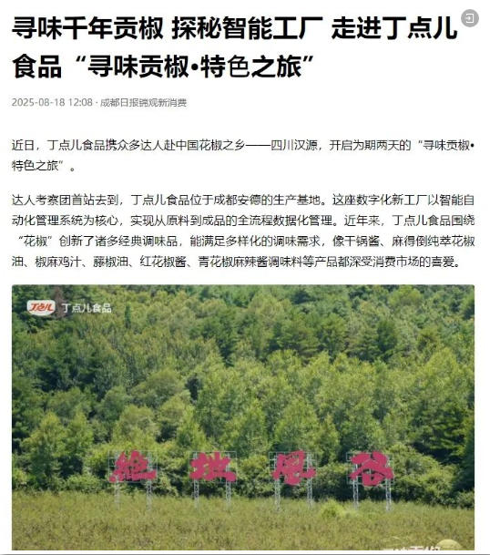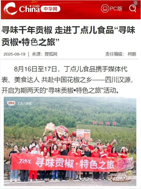每一篇報(bào)道都是對(duì)品質(zhì)的見(jiàn)證,每一次傳播都是對(duì)匠心的認(rèn)可。在丁點(diǎn)兒2025“尋味貢椒·特色之旅”活動(dòng)期間,來(lái)自全國(guó)的數(shù)十家權(quán)威媒體、行業(yè)平臺(tái)及自媒體博主,以筆為媒,共同記錄了這場(chǎng)關(guān)于風(fēng)味、文化與產(chǎn)業(yè)的深度對(duì)話(huà)。