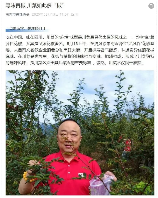 南充市烹飪協(xié)會(huì)在公眾號(hào)刊文,肯定了丁點(diǎn)兒食品在推動(dòng)川菜發(fā)展做出的貢獻(xiàn),對(duì)丁點(diǎn)兒高品質(zhì)特色川調(diào)產(chǎn)品的風(fēng)味給予了高度評(píng)價(jià)。成都隅園餐飲探索者則以視頻形式記錄了活動(dòng)實(shí)況:走進(jìn)貢椒之鄉(xiāng),了解食材根源。