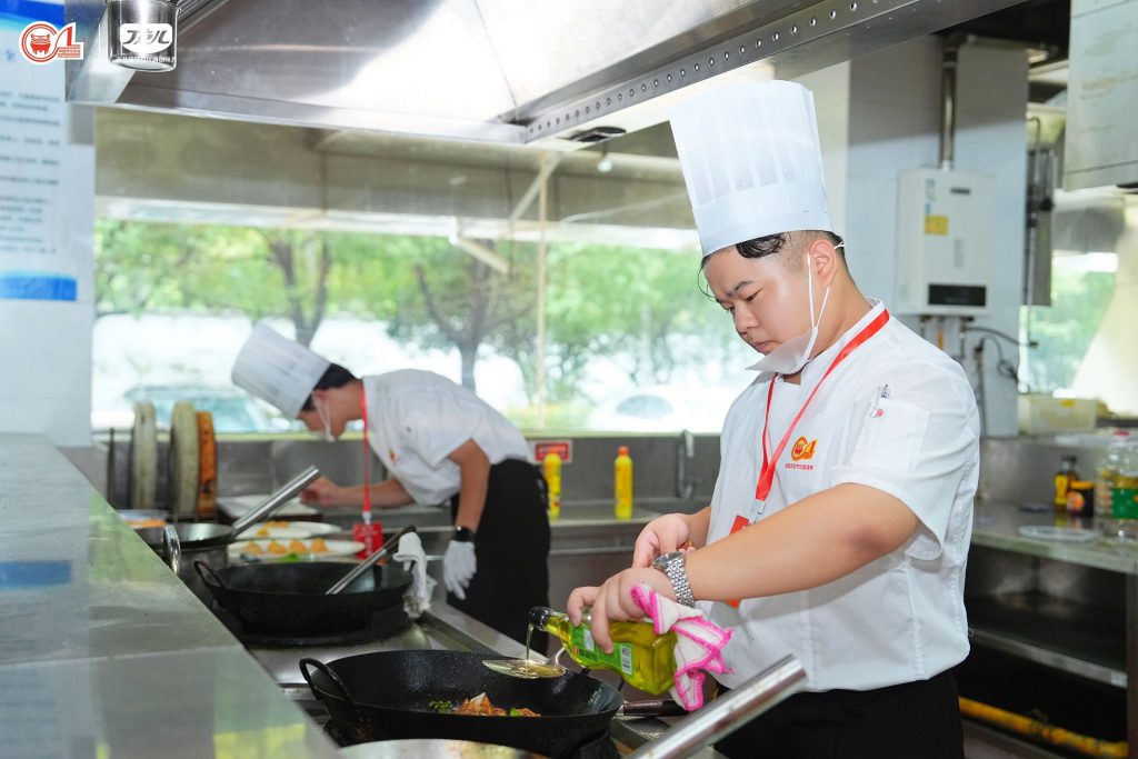 賽場上,氣氛緊張而熱烈,灶火的呼嘯、刀具與砧板的碰撞、食材下鍋的瞬間脆響相互交織。每位選手全神貫注,將丁點(diǎn)兒干鍋醬、椒麻雞汁、老壇酸菜醬等7款大賽指定調(diào)味品與本地食材進(jìn)行巧妙結(jié)合與創(chuàng)作,確保每一道出品都是匠心之作。