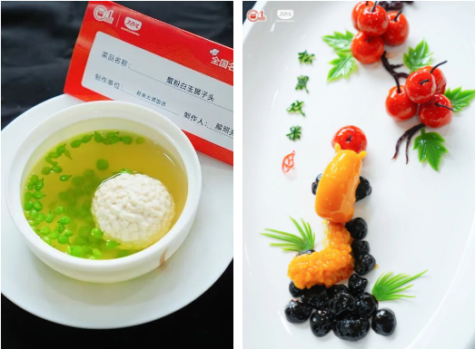 最終,大賽評(píng)選出特金獎(jiǎng)10名,金獎(jiǎng)48名,銀獎(jiǎng)66名。來自君來太湖飯店的選手顏照亮,憑借烹制的蟹粉白玉獅子頭、松鼠戲果兩道菜品,以獨(dú)特創(chuàng)意與突出風(fēng)味拔得頭籌,獲得獎(jiǎng)金¥15000元。