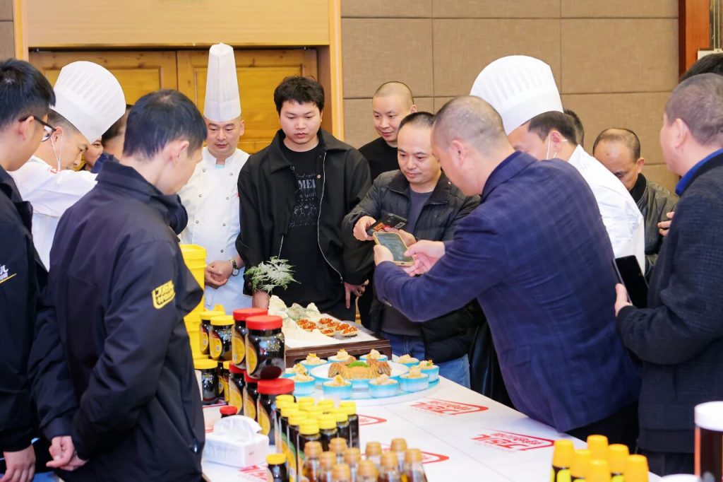嘉賓們一邊品鑒菜肴,一邊與丁點兒工作人員熱烈交流,紛紛對丁點兒高品質特色川調產品表現(xiàn)出濃厚興趣,并現(xiàn)場達成合作。有廚師分享到:丁點兒的干鍋醬層次感很豐富,味道濃郁,省去了自己調味的麻煩,直接提升出菜效率!