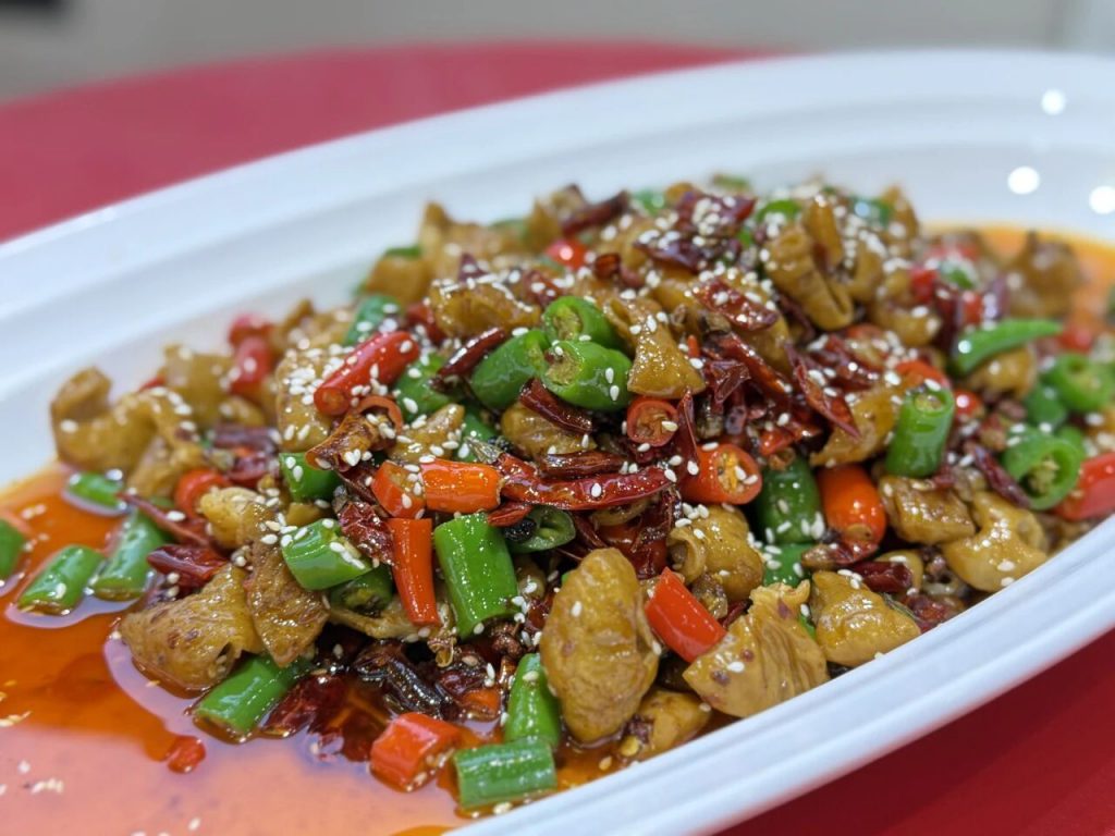 為讓觀眾更好感受丁點兒高品質(zhì)特色川調(diào)產(chǎn)品的風(fēng)味與優(yōu)勢,菜品研發(fā)工程師以丁點兒老壇酸菜醬、干鍋醬、泡椒醬等現(xiàn)場演繹了金湯爽口烏魚片、丘北辣椒爆肥腸、砂鍋泡椒牛蛙等多道風(fēng)味菜品。隨著鍋鏟翻飛,醬料與高溫碰撞的瞬間,濃郁香氣立刻在空氣中炸開,強勢挑逗著現(xiàn)場觀眾的味蕾。