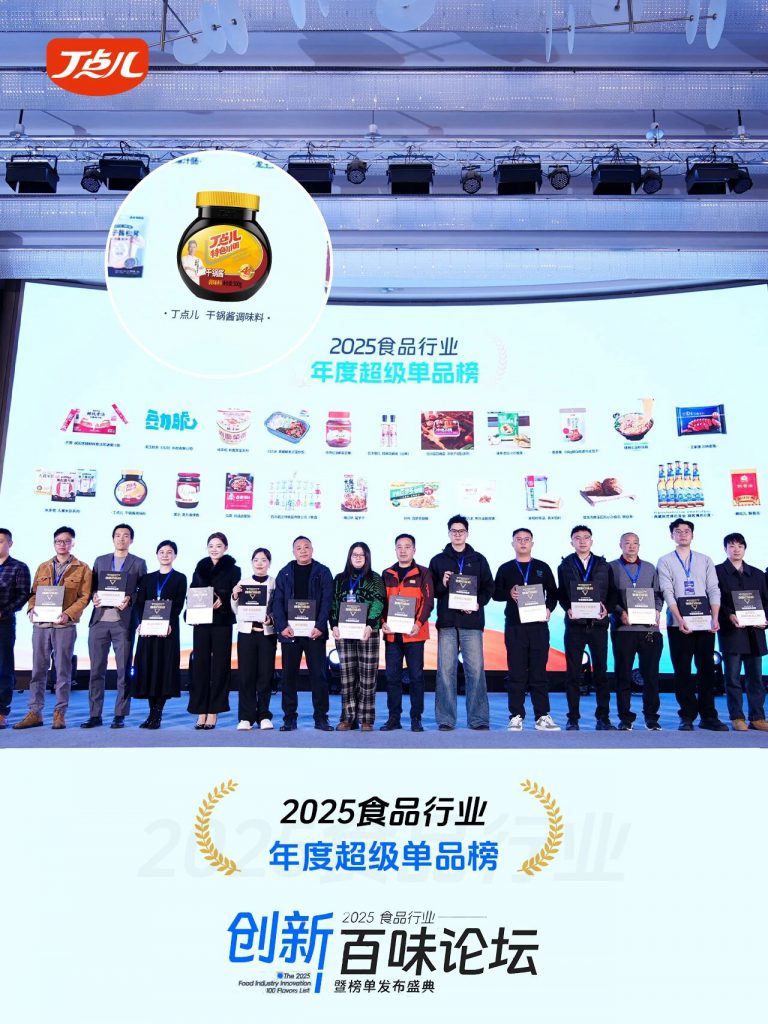 12月23日,在“共棲·2025食品行業(yè)創(chuàng)新百味論壇暨榜單發(fā)布盛典”上,丁點(diǎn)兒食品以明星產(chǎn)品干鍋醬及優(yōu)質(zhì)品牌內(nèi)容,成功摘得“年度超級(jí)單品榜”與“年度優(yōu)質(zhì)內(nèi)容品牌榜”雙項(xiàng)榮譽(yù),展現(xiàn)了企業(yè)在產(chǎn)品力與品牌影響力上的雙重實(shí)力。