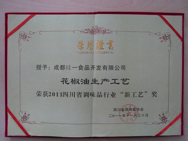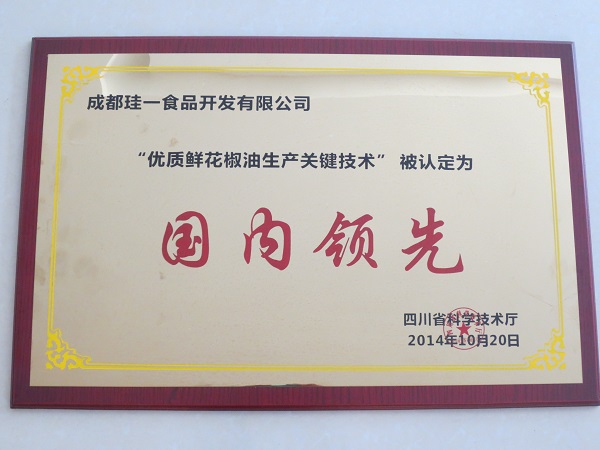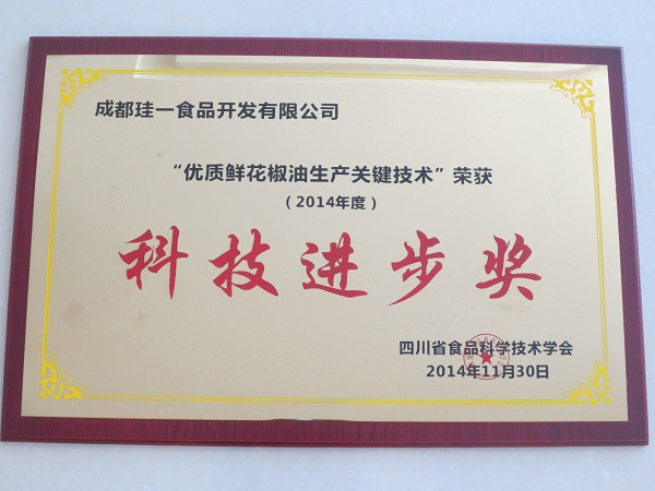花椒油關(guān)鍵技術(shù)科技進(jìn)步獎(jiǎng)