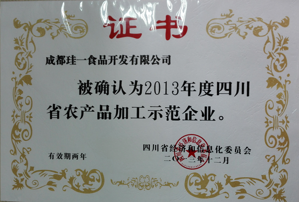 農(nóng)產(chǎn)品加工示范企業(yè)證書(shū)