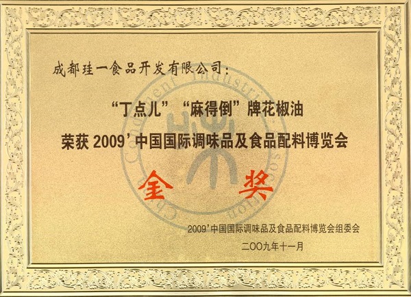 中國(guó)國(guó)際調(diào)味品及食品配料博覽會(huì)金獎(jiǎng)