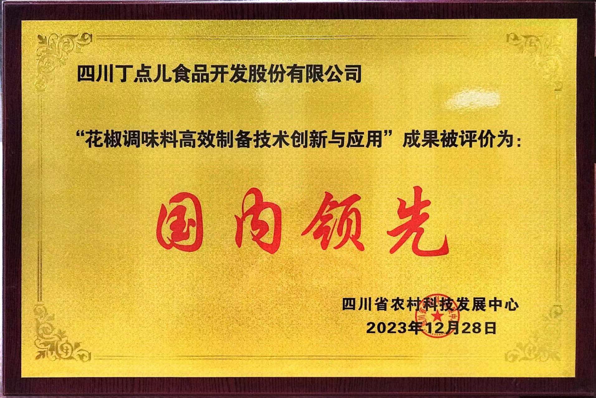 喜訊!丁點(diǎn)兒食品“花椒調(diào)味料高效制備技術(shù)創(chuàng)新與應(yīng)用”成果被評(píng)定為“國(guó)內(nèi)領(lǐng)先”